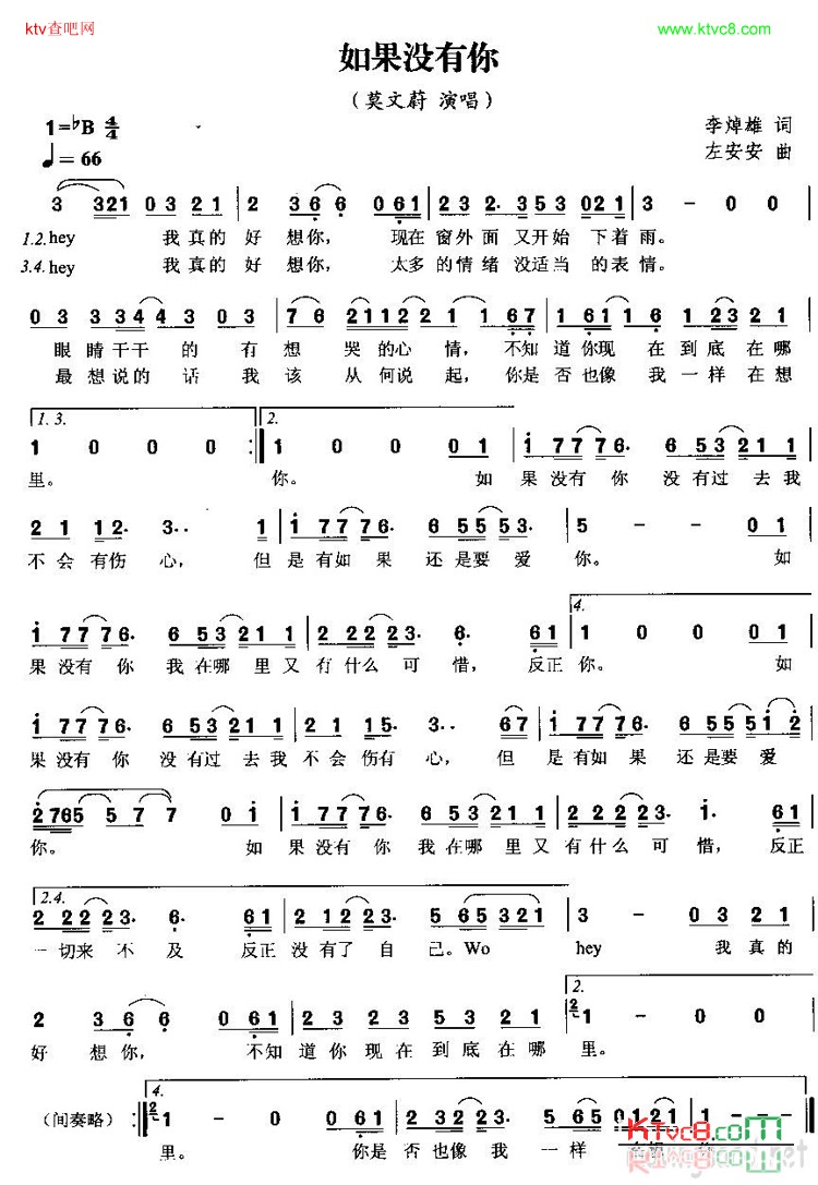 如果没有你的钢琴简谱