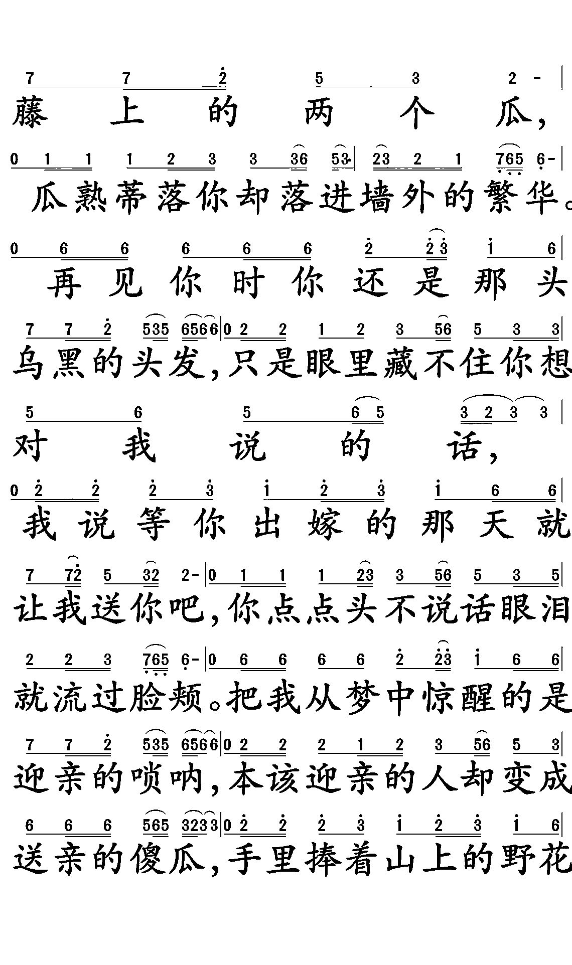 送亲 歌谱 简谱
