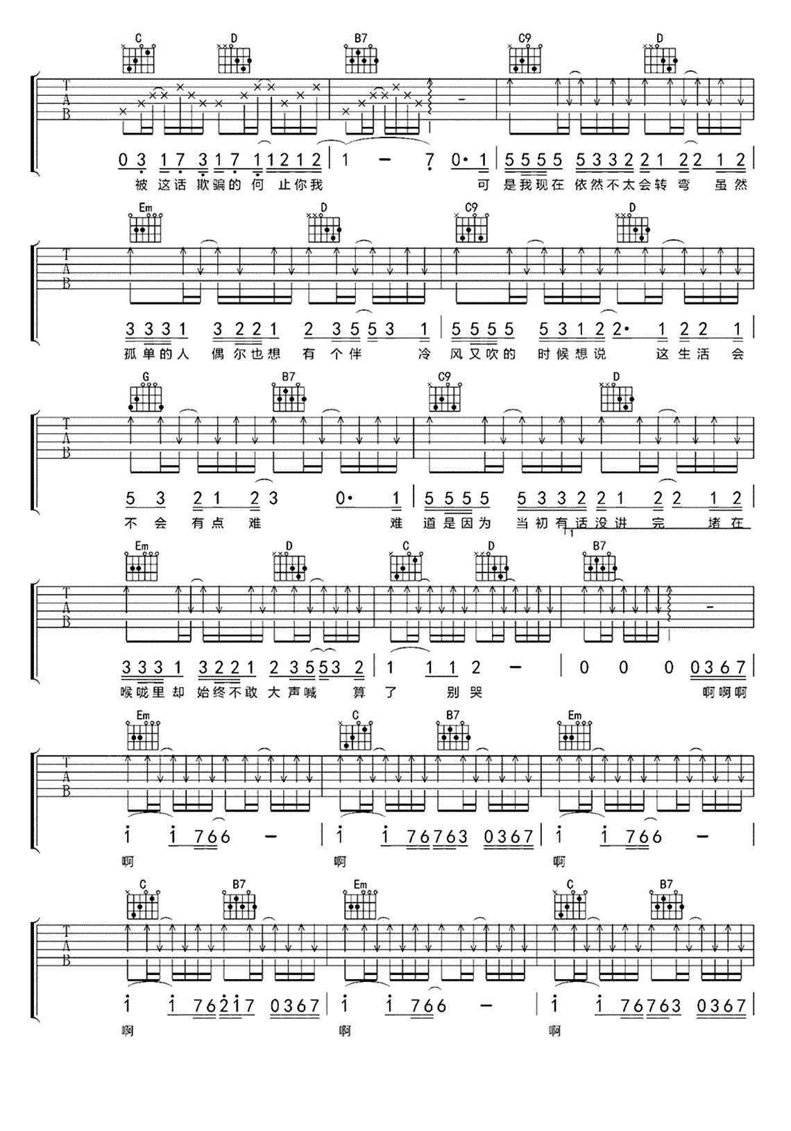 呓语吉他谱毛不易吉他图片谱2张