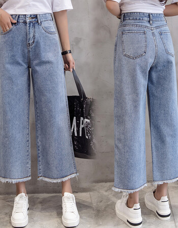 蓝色牛仔裤想象sailormoon高腰阔腿裤女垂感显瘦窄版直筒九分裤