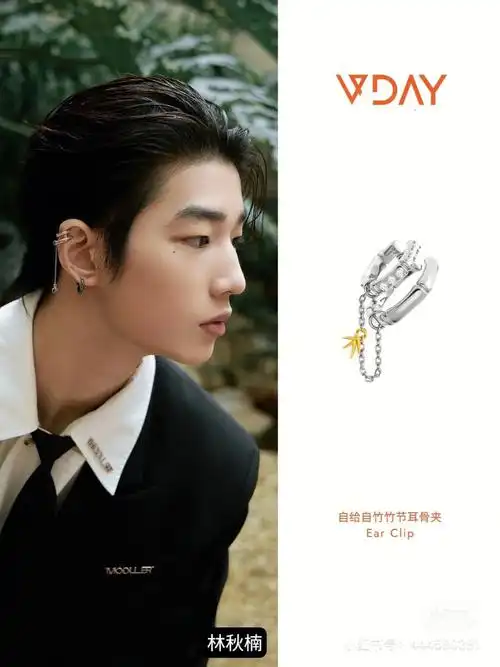 林秋楠佩戴vday 自然风骨系列竹节耳骨夹,矜贵清隽,散发绅士与少年