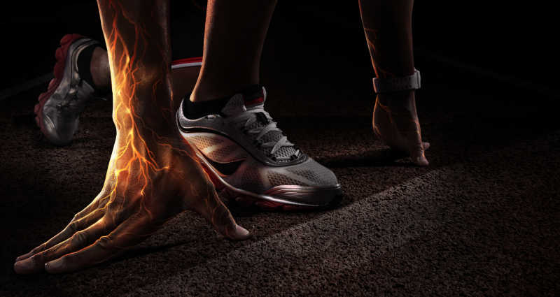 起跑线上充满火和能量的手