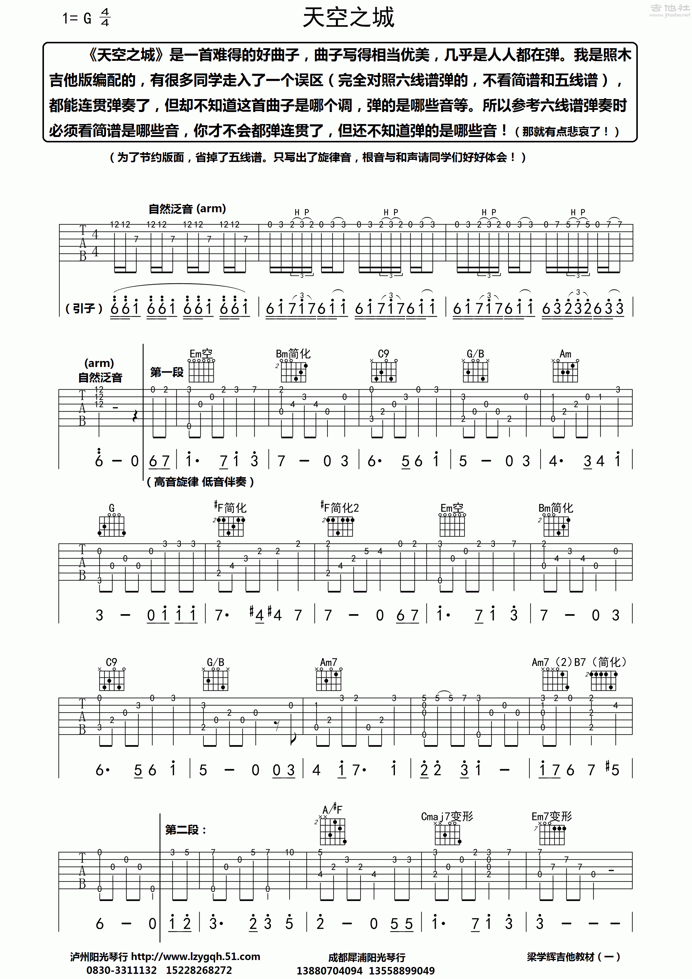 天空之城吉他谱(图片谱,指弹,独奏,木吉他)_动漫游戏(acg)_天空之城