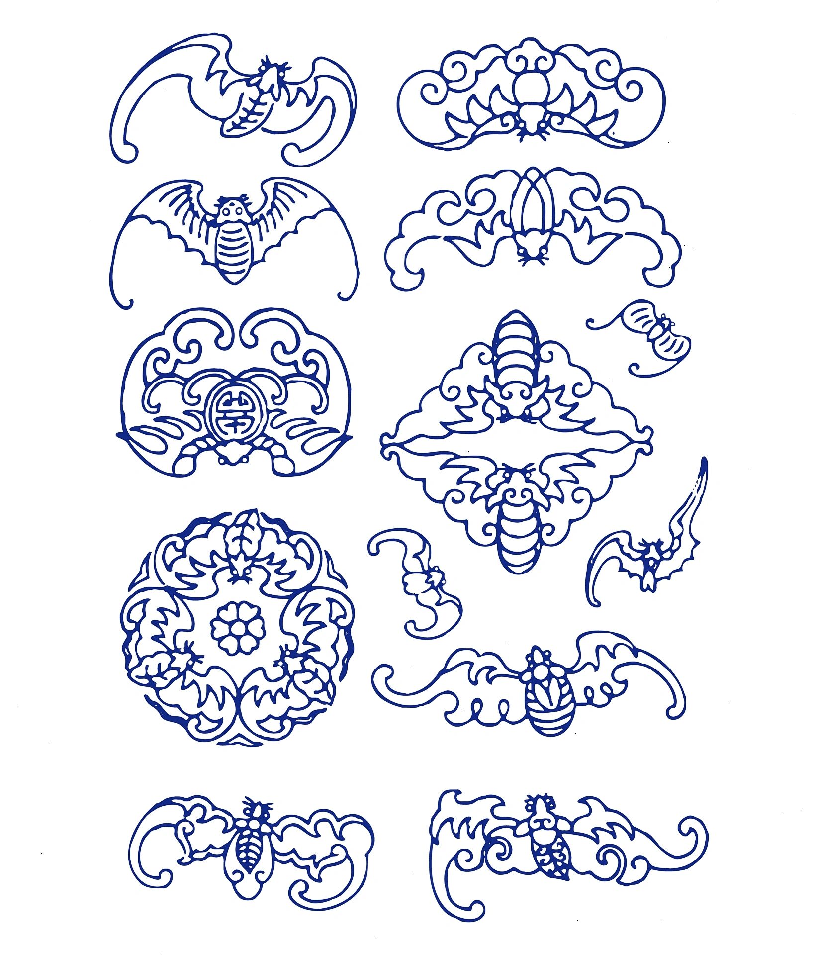 蝙蝠纹样微集锦线稿