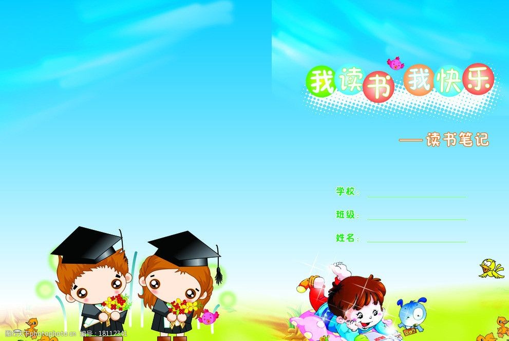 我读书我快乐 小博士 作文封面 课本 卡通学生 蓝天白云 广告设计