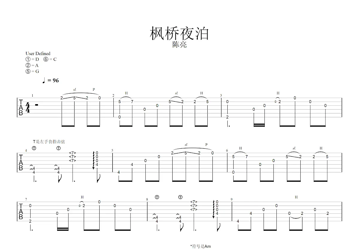 枫桥夜泊吉他谱_陈亮_g调指弹吉他谱 - 吉他世界