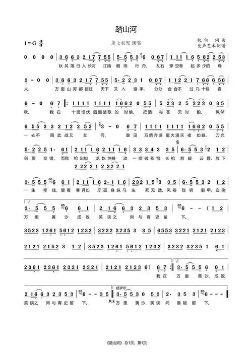 《踏山河》简谱歌谱
