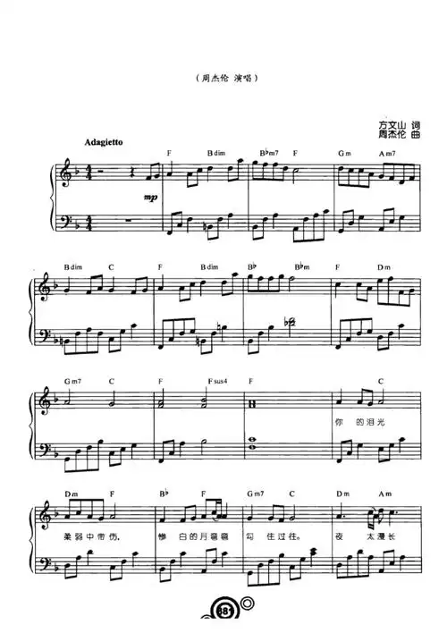 菊花台(周杰伦)原版五线谱钢琴谱正谱乐谱.docx