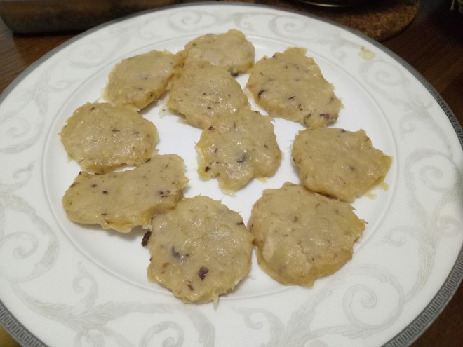 第三道菜——蒸鱼饼.把它切片并摆盘,放入锅中蒸十五分钟即可.