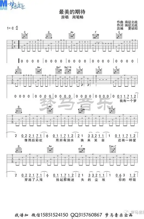 周笔畅《最美的期待》吉他谱_c调中级版_高清六线谱_酷音小伟教学版.