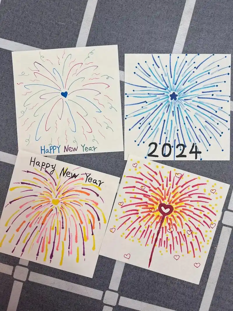 烟花简笔画.2024年啦,给爱的人画烟花吧929393#跟着 - 抖音