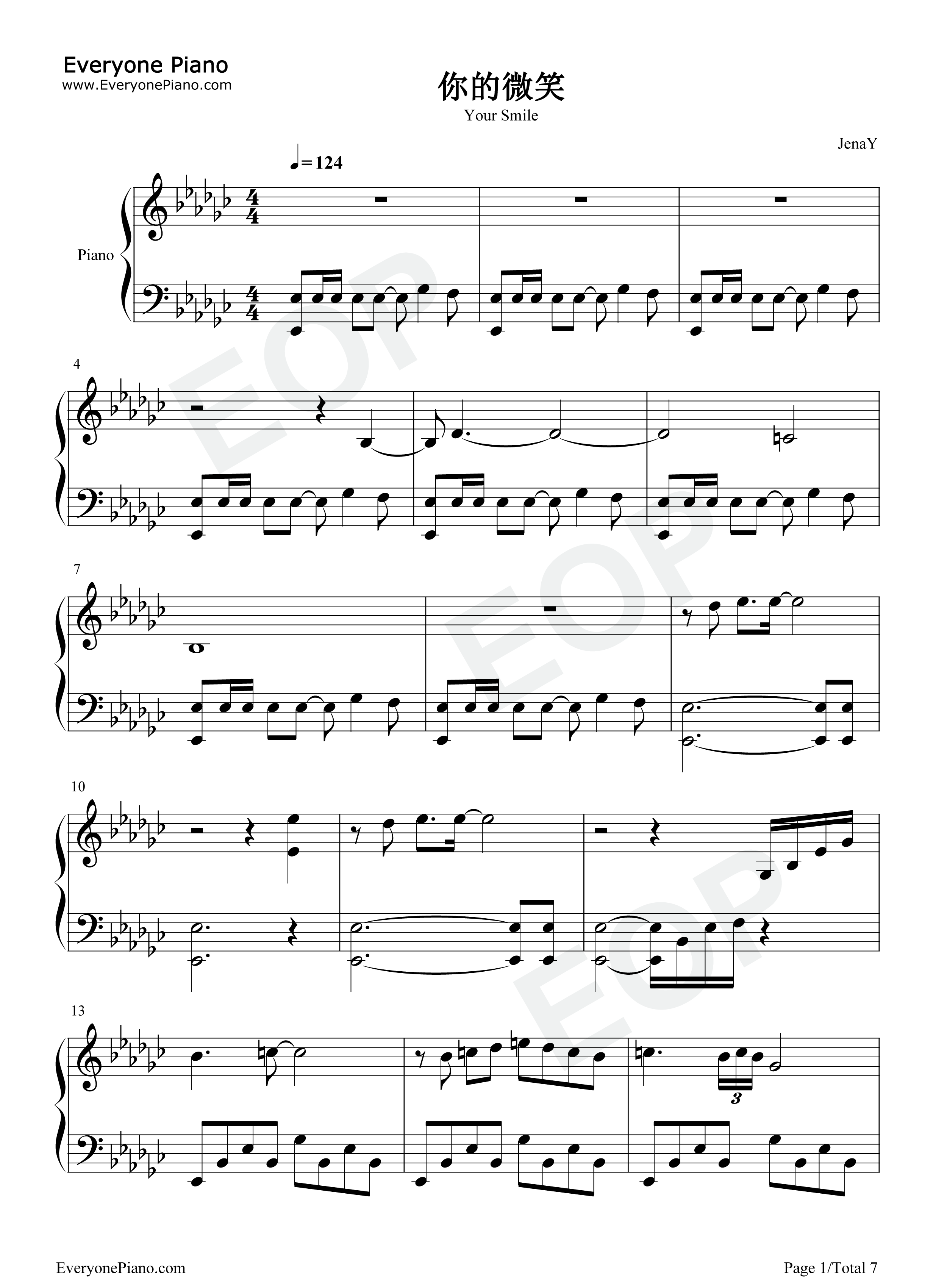 你的微笑,你的微笑钢琴谱,你的微笑c调钢琴谱,你的微笑钢琴谱大全