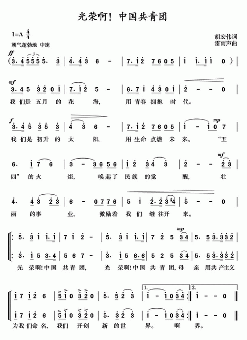 共青团员之歌简谱谢多伊作曲孙世彦制谱