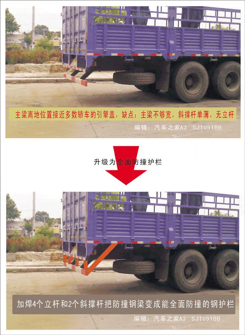 并不是所有的大货车都按照这一标准安装了防护栏,防撞护栏真的就一无