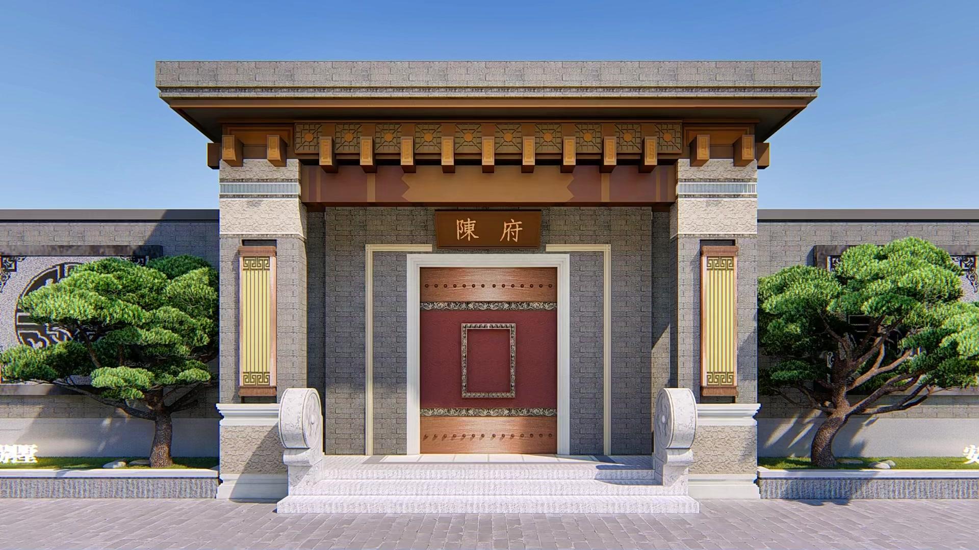 门头设计 农村自建别墅 别墅庭院 陈府别墅庭院大门设计