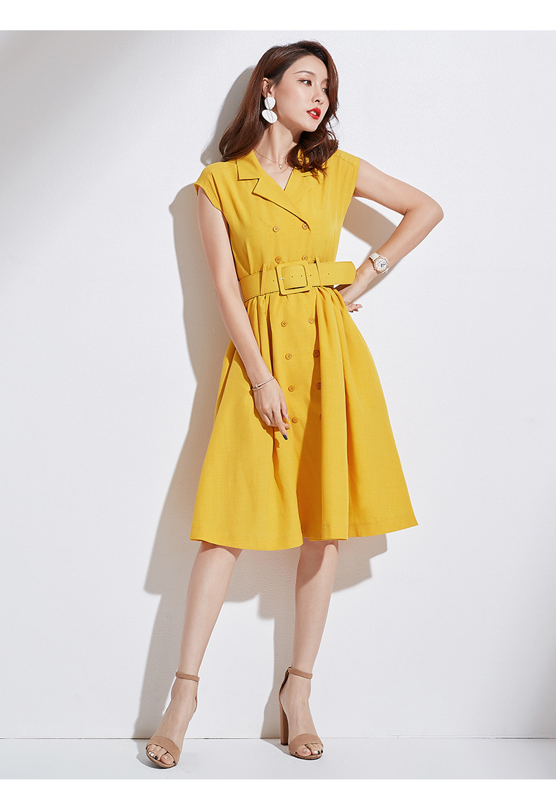 遇见衣姿棉麻连衣裙中长款2020夏天新款韩版修身休闲文艺收腰女装亚麻
