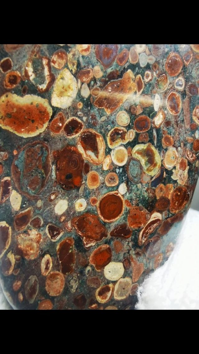 五彩球粒陨石精品!切了一块做挂件!