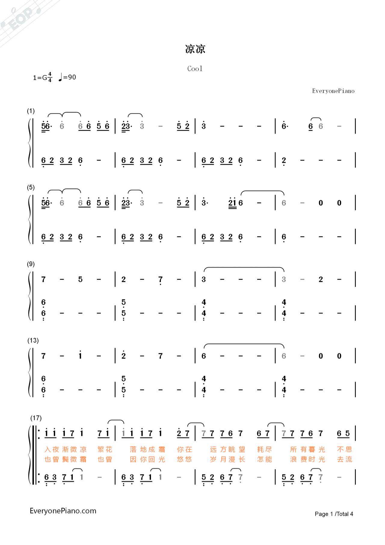 凉凉钢琴谱张碧晨杨宗纬流行钢琴简谱