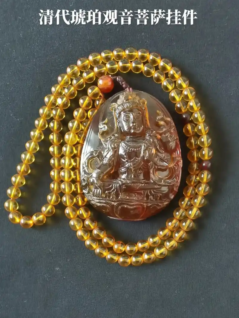 孤品缅甸琥珀全手工雕刻"观世音"吊坠!重74.58克,规 - 抖音