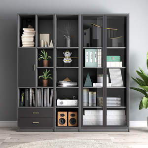 玻璃门书柜现代简约自由组合书橱家用轻奢一体靠墙书房柜子储物柜