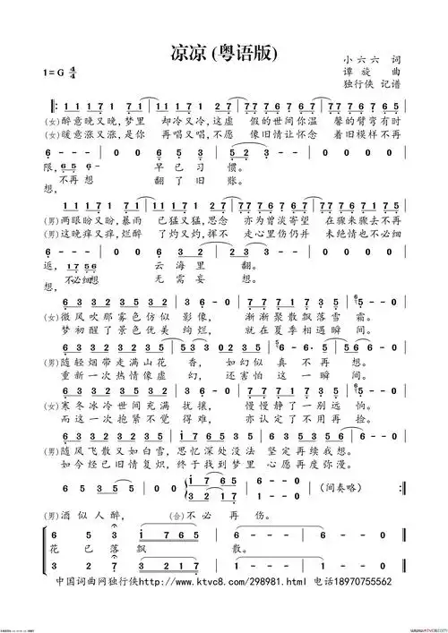 凉凉粤语版简谱