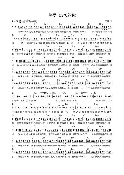 热爱105度的你歌词简谱第1页