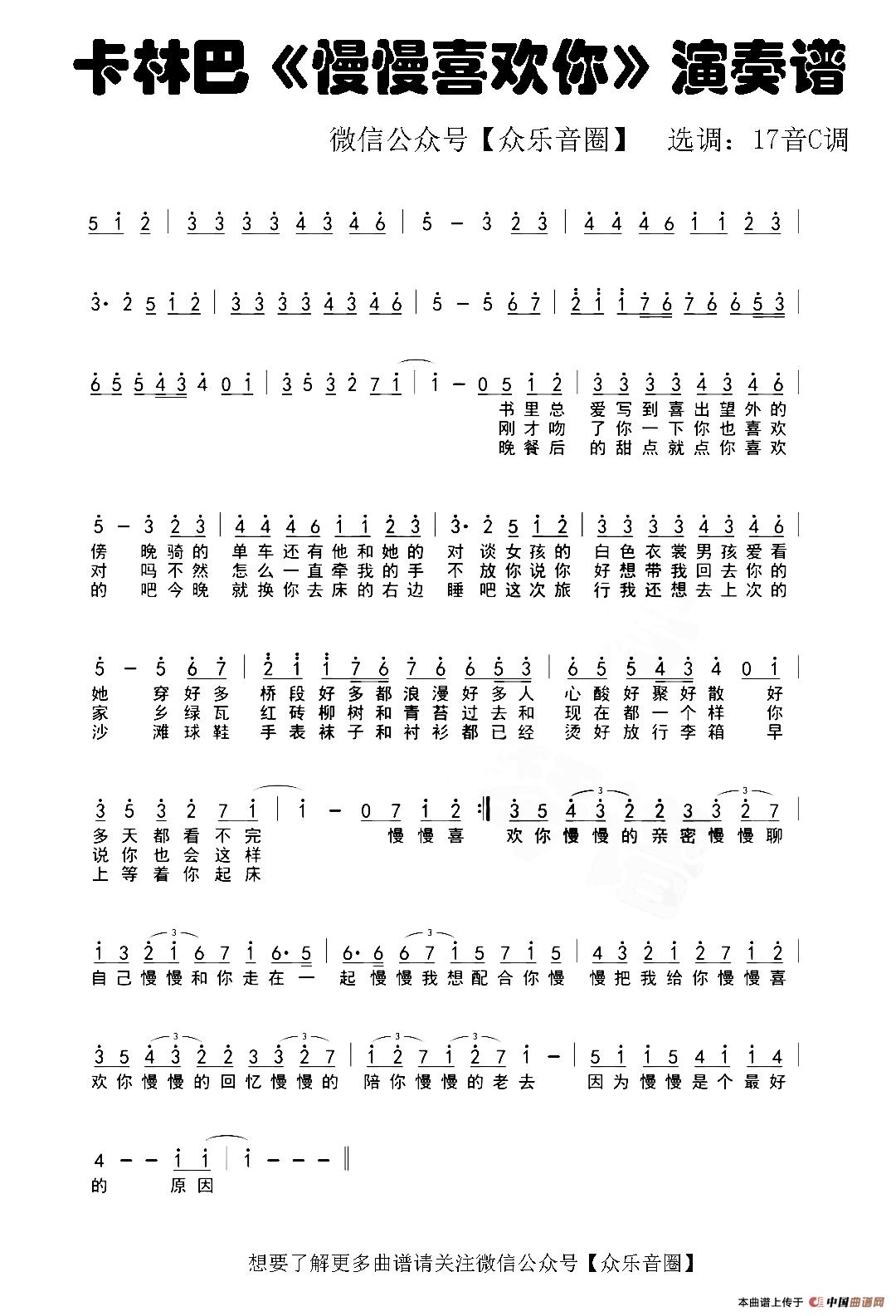 慢慢喜欢你拇指琴卡林巴琴和弦简谱