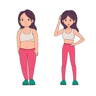 png女孩子胖瘦对比png男孩和女孩png运动前后美女胖瘦对比png手绘大