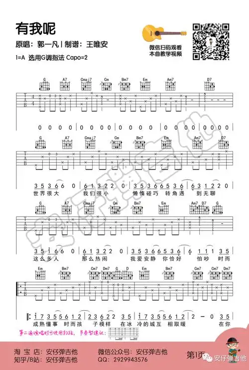 郭一凡有我呢示范教学安仔弹吉他弹唱教学吉他谱