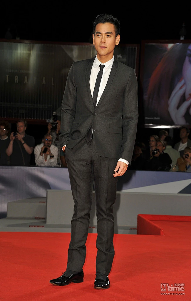 彭于晏相当懂得自己的优势,一身暗黑色礼服西装加白衬衣谁都会穿,但那