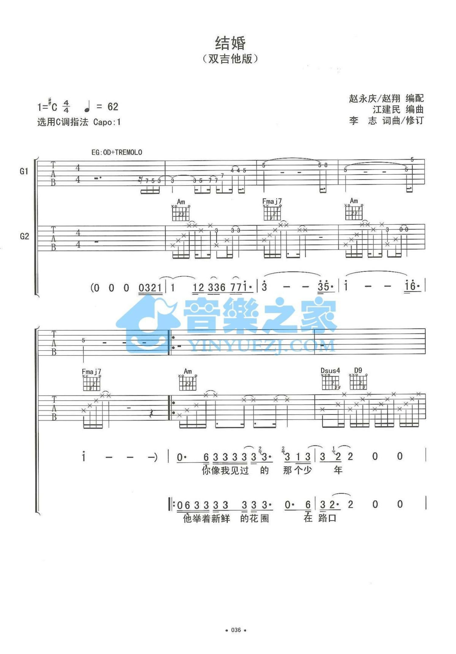 李志结婚吉他谱c调吉他弹唱谱双吉他版