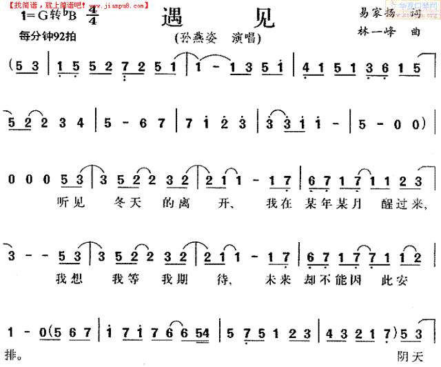 >>遇见简谱乐谱