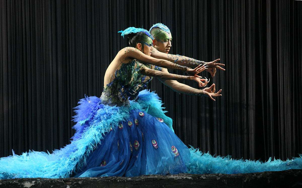 杨丽萍孔雀舞中舞者造型近乎赤裸# 杨丽萍表演孔雀舞男舞者尺度大
