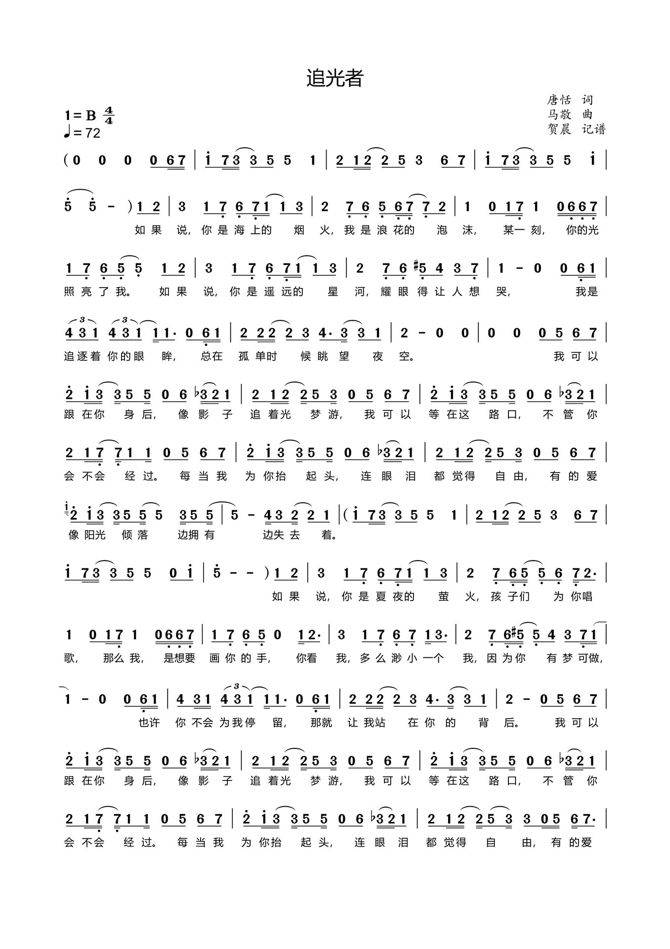 《追光者》简谱🎶.#歌单种草计划 #抖音热歌 #看见音乐计