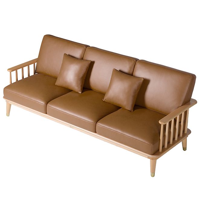铜师傅 现代戈雅榉木真皮实木客厅小户型三人沙发