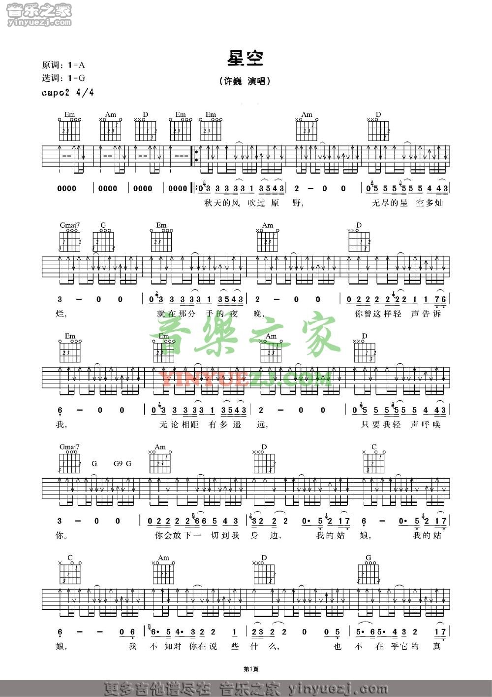 星空g调六线吉他谱-虫虫吉他谱免费下载