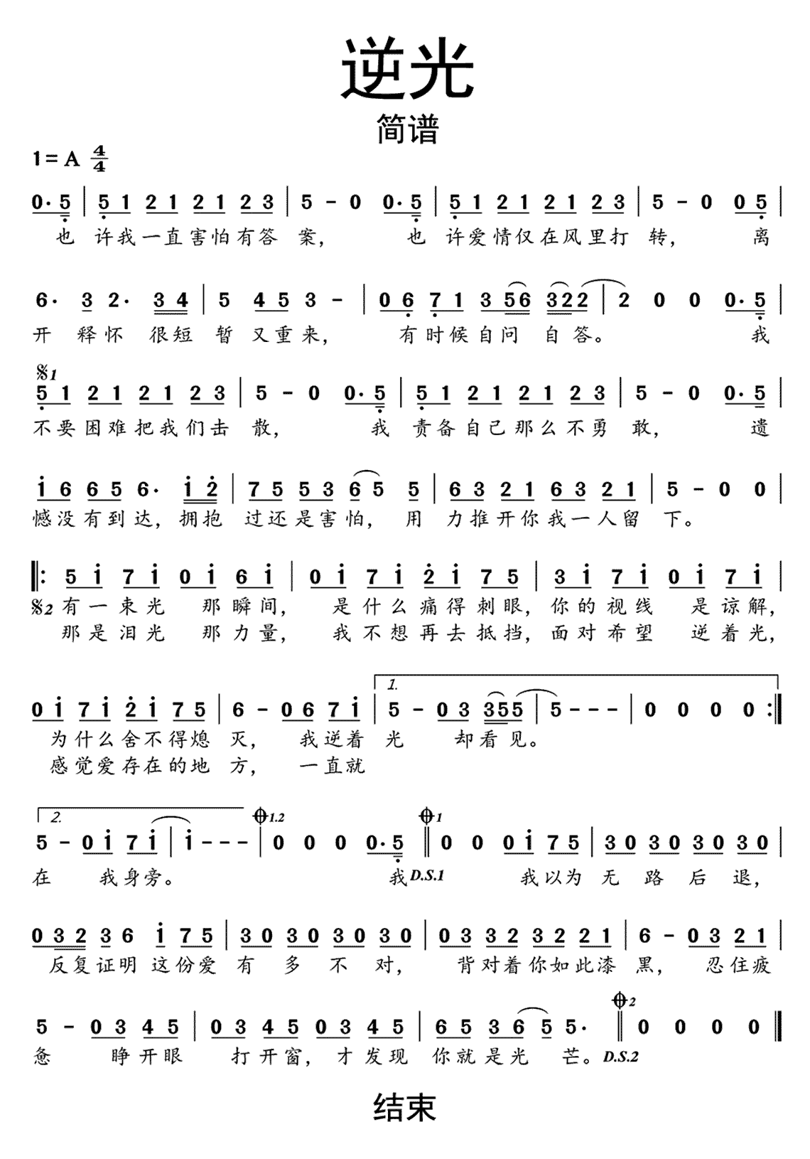 >>逆光简谱乐谱