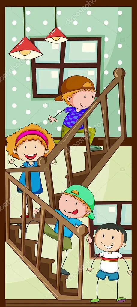 夸张手法的手绘在台阶上奔跑的男孩免抠png图片矢量图素材