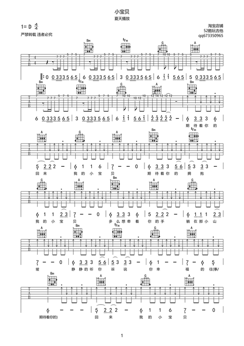小宝贝吉他谱原版|小宝贝吉他谱夏天播放c调_小宝贝歌词歌谱