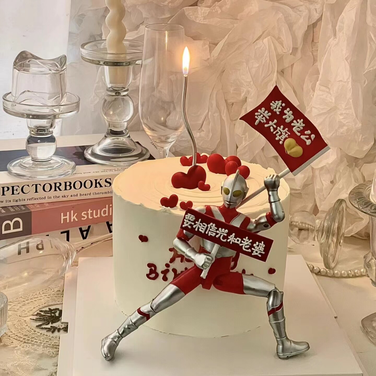 网红变形超人蛋糕装饰摆件搞笑恶搞英雄战士银色蜡烛男神生日装扮