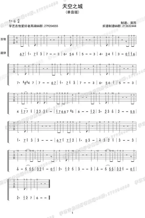 天空之城吉他谱单音