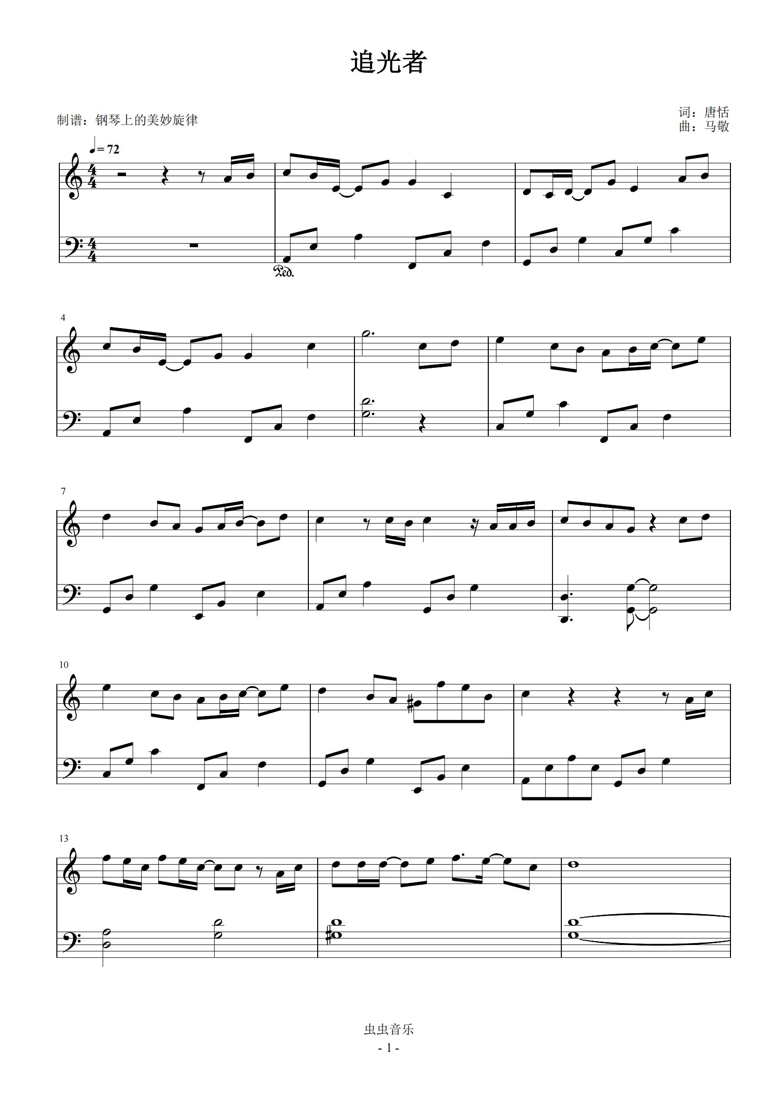 追光者钢琴谱-c调-虫虫钢琴