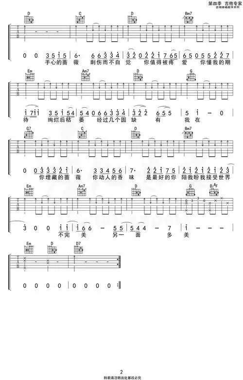 手心的蔷薇吉他谱_林俊杰&邓紫棋_g调弹唱六线谱