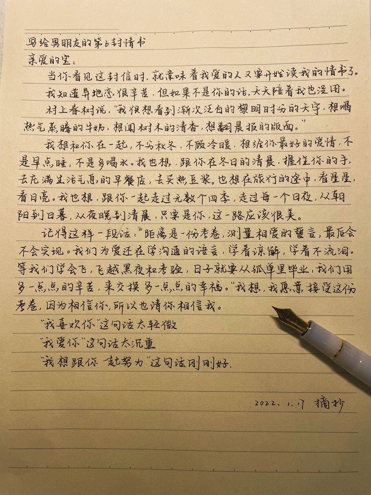 手写摘抄|写给男朋友的365封情书-6 "我喜欢你"这句话太轻微 "我爱你"