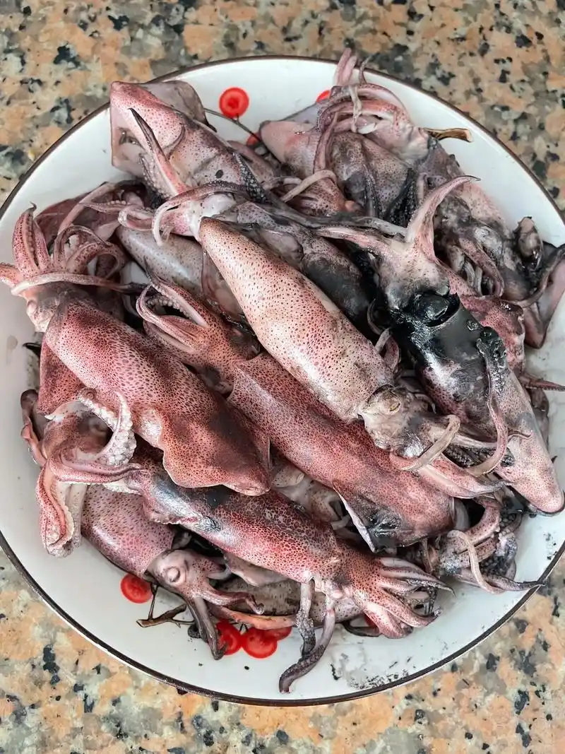 肚子墨水少,吃点新鲜鱿鱼,带墨吃的鱿鱼,吃完嘴巴没法看! - 抖音
