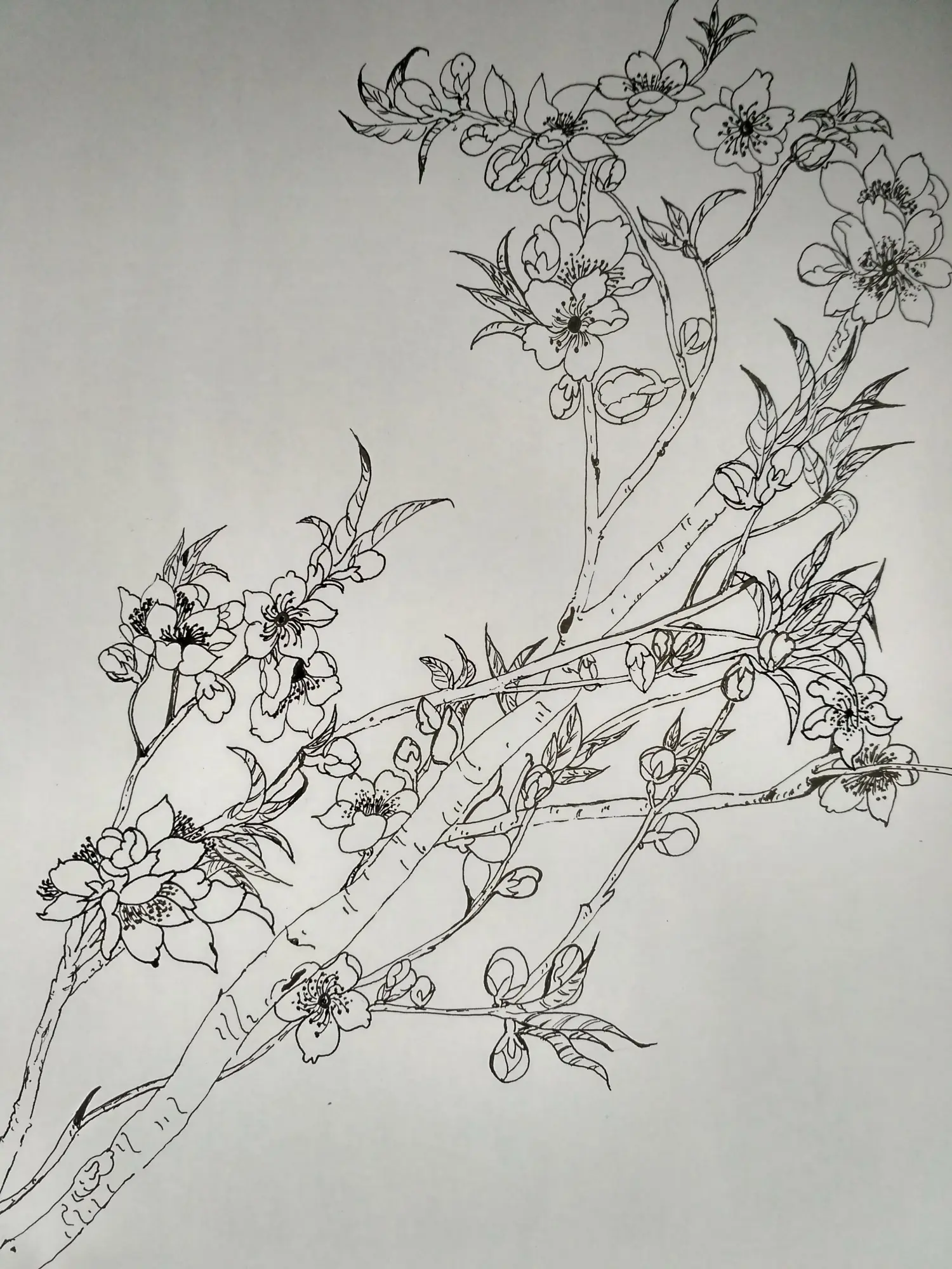 教你画桃花白描部分上色