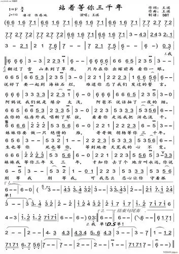 站着等你三千年(男声独唱) 歌谱简谱网