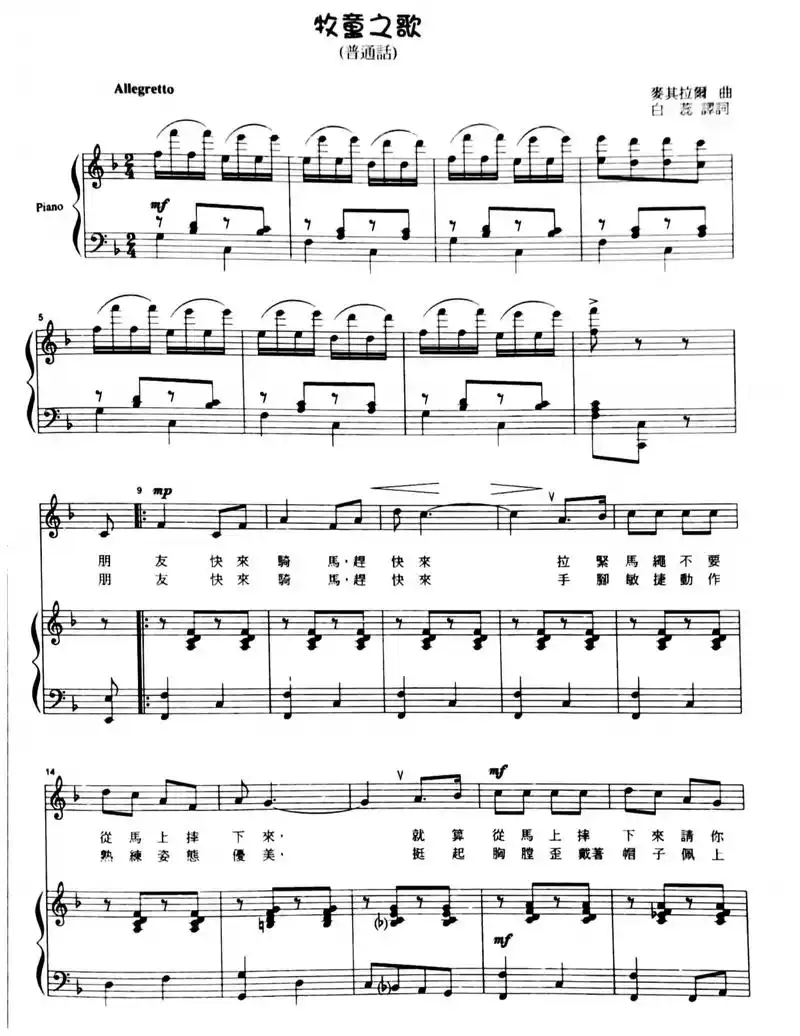 童声合唱 二声部合唱 钢琴正谱《牧童之歌》 - 抖音