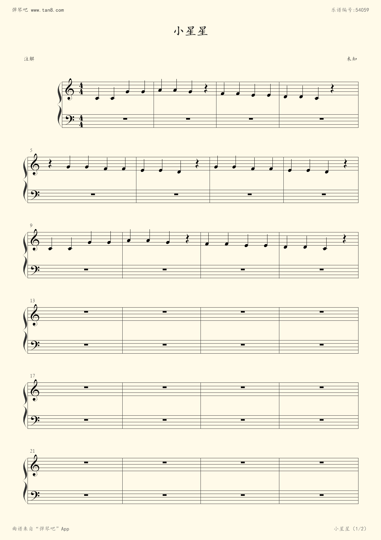 小星星,小星星钢琴谱,小星星c调钢琴谱,小星星钢琴谱大全,虫虫钢琴谱