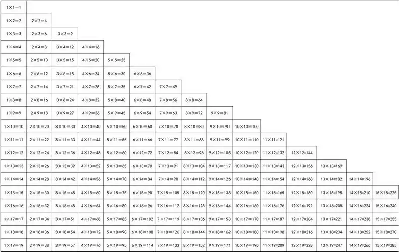19乘19乘法口诀表--史上最全完整版(a3纸直接打印)